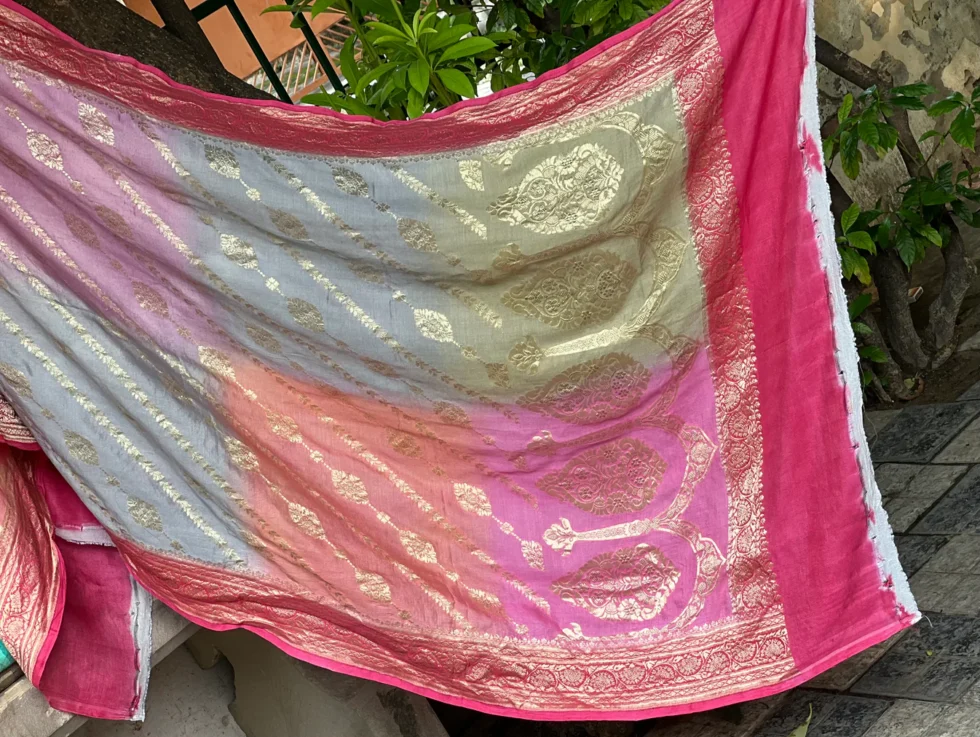 PURE BANARASI MOONGA TUSSAR SILK RANGKAAT DUPATTA