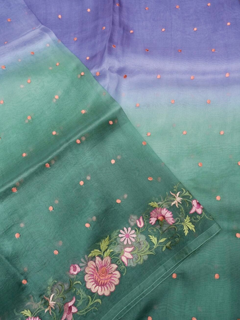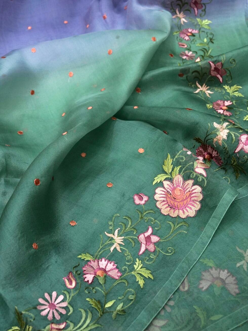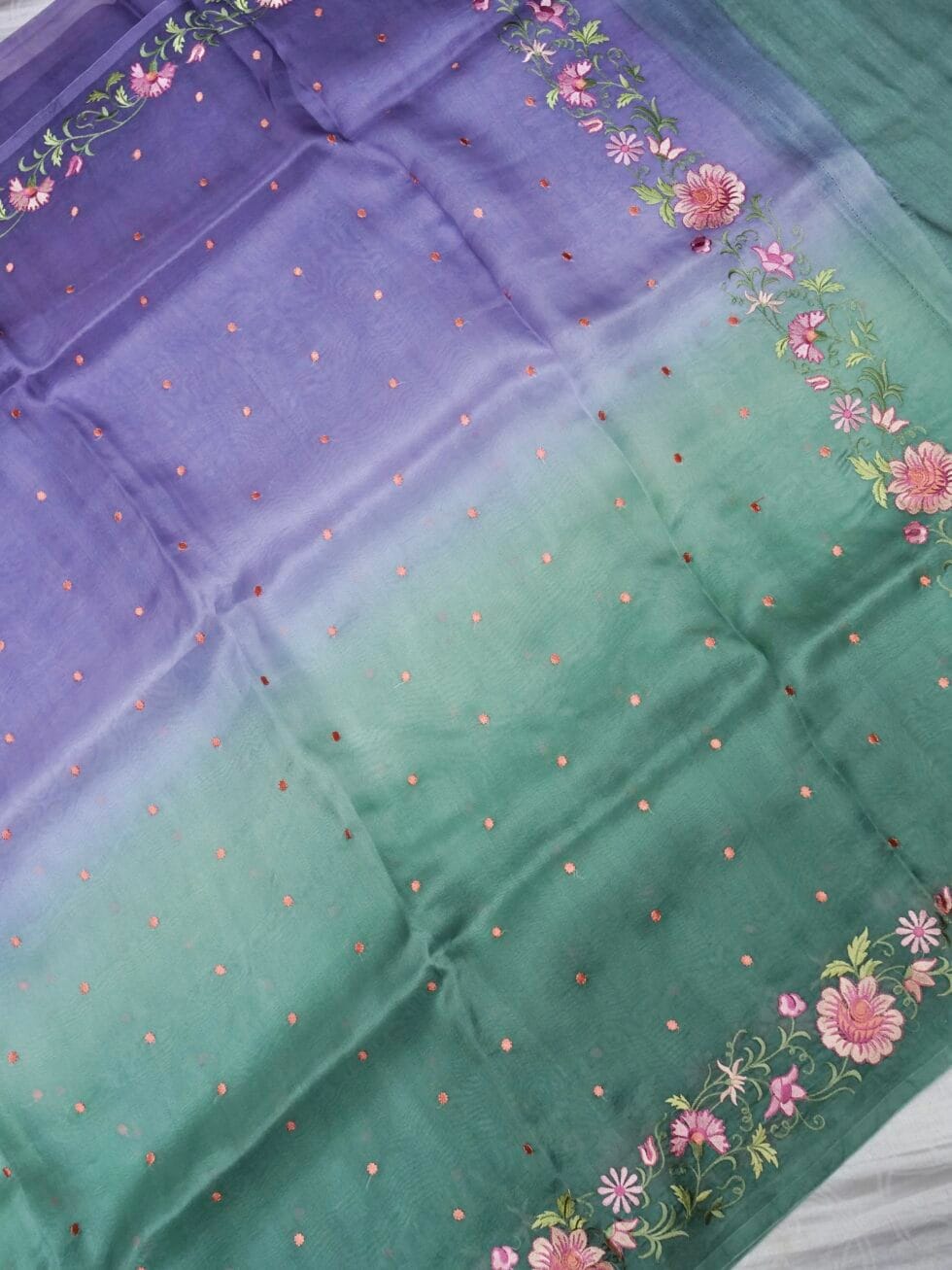 Pure Organza silk with resham’s chikankari in dual tone shaded dye