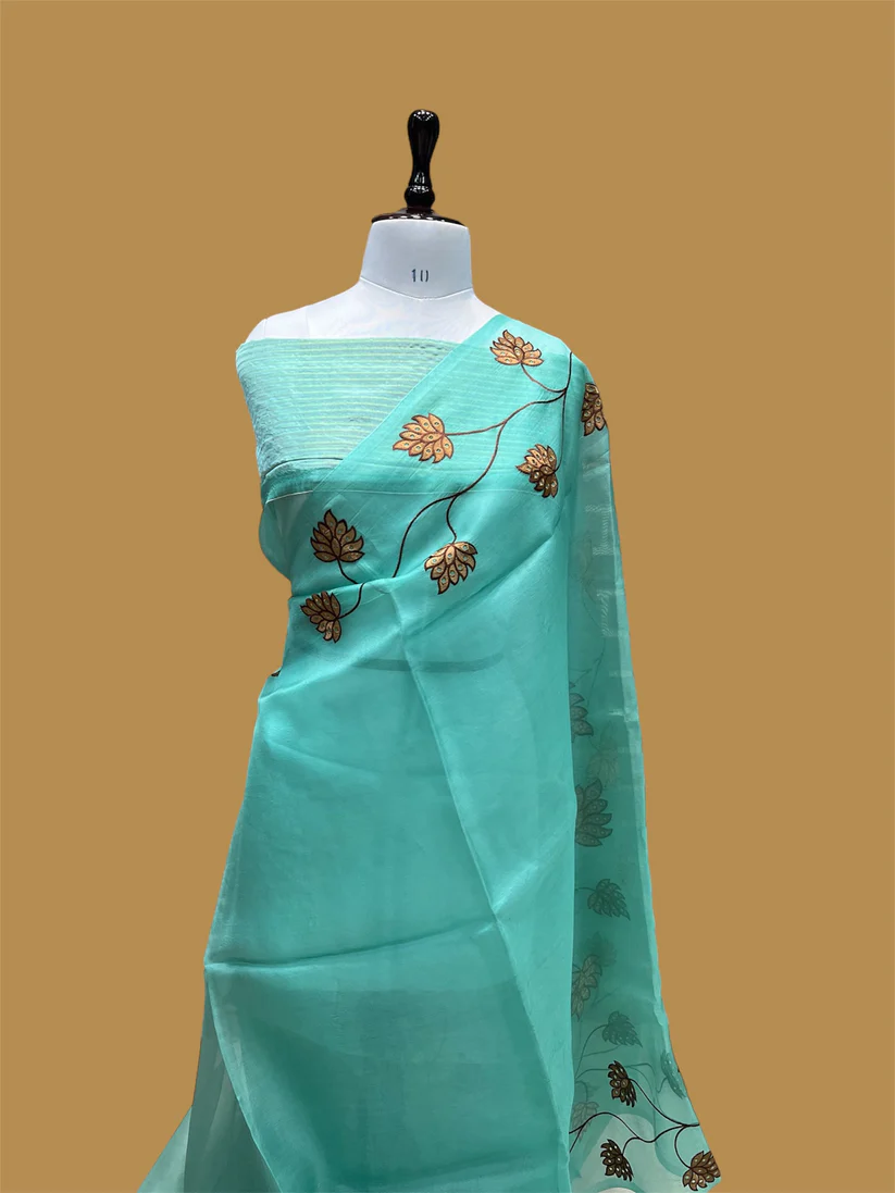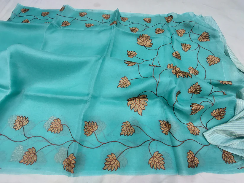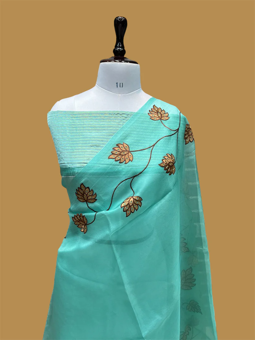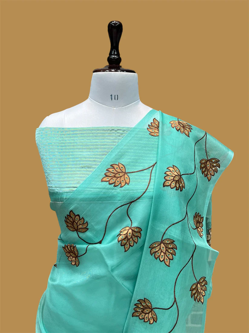 PURE BANARASI ORGANZA JHAAD CHIKANKARI SAREE