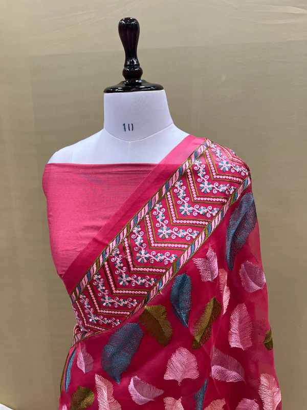 PURE BANARASI ORGANZA SILK CHIKANKARI SAREE