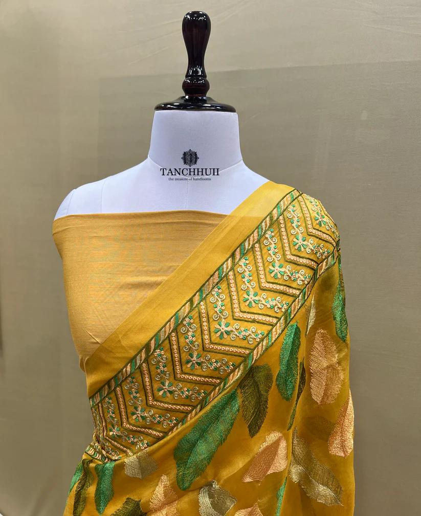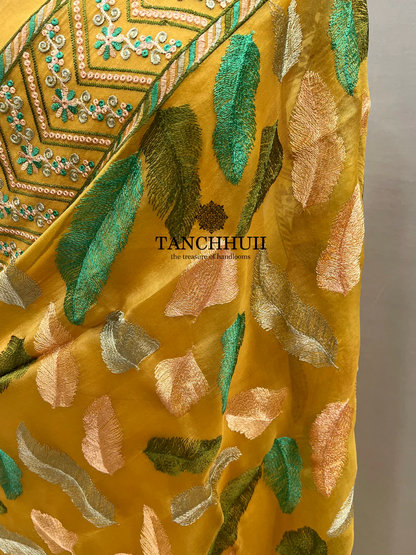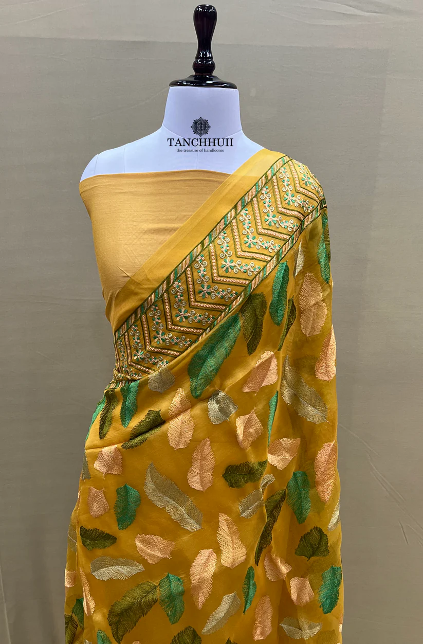 PURE BANARASI ORGANZA SILK CHIKANKARI SAREE