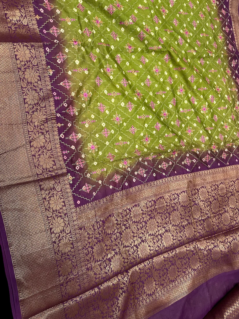 PURE COTTON SILK CHIKANKARI BANDHANI HANDLOOM BANARASI SAREE