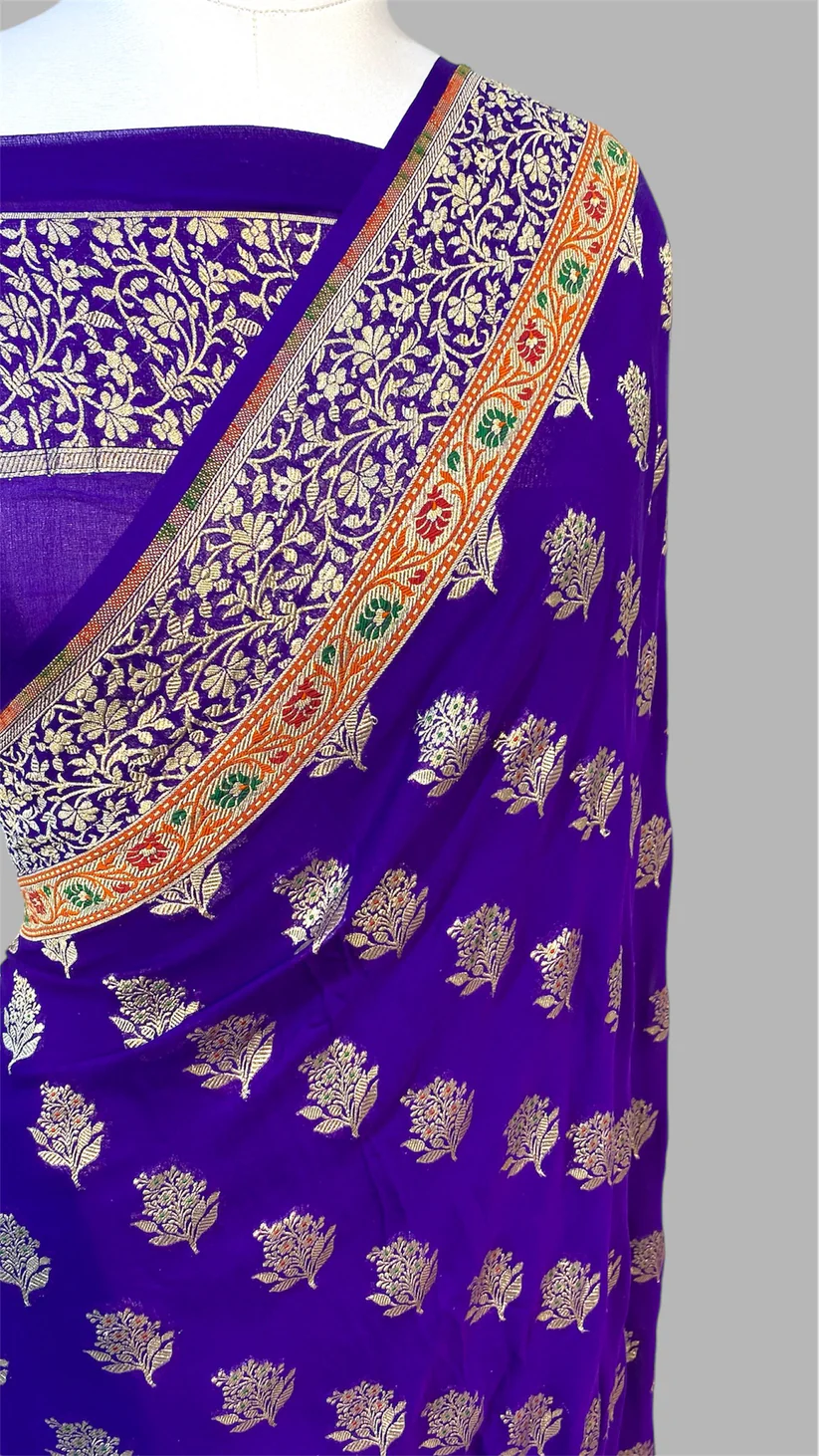 PURE KHADDI GEORGETTE HANDLOOM BANARASI ALFI SAREE