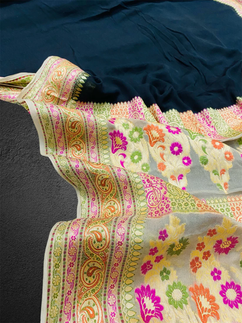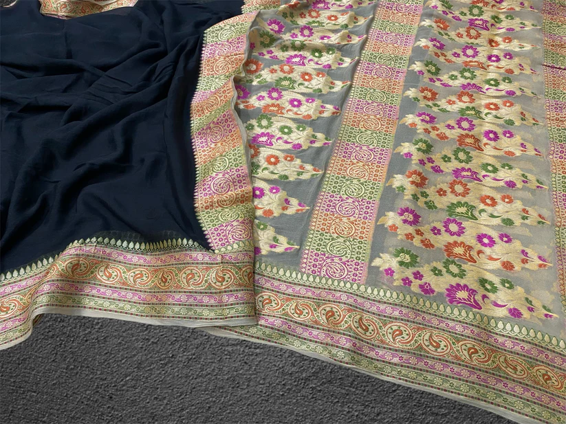 - Product – Pure khaddi georgette handloom Banarasi saree