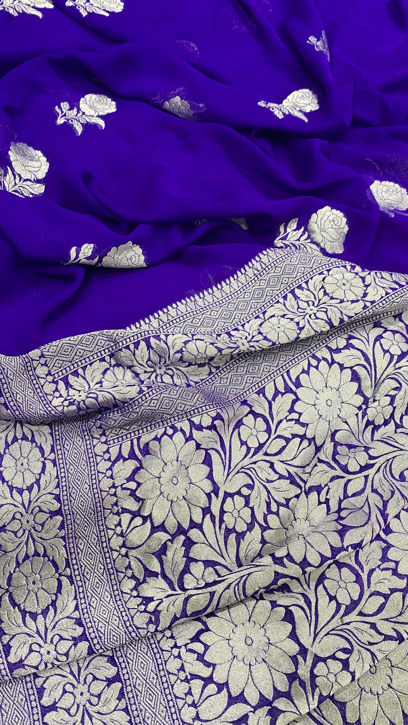 - Product – Pure khaddi georgette handloom Banarasi saree