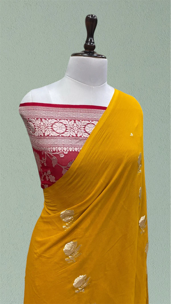 - Product – Pure khaddi georgette handloom Banarasi saree