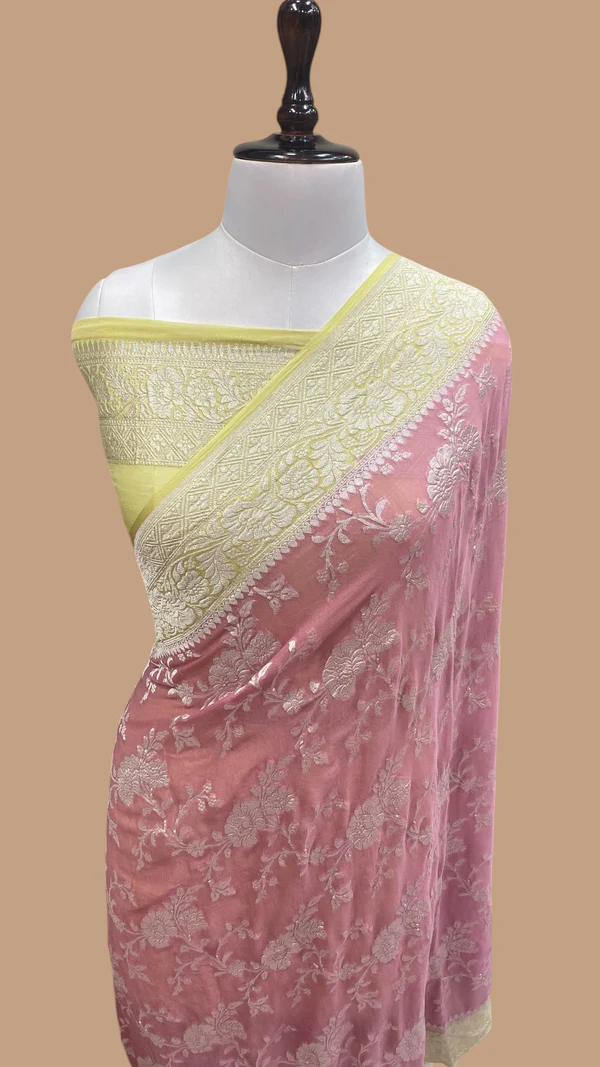 PURE KHADDI GEORGETTE HANDLOOM BANARASI SAREE