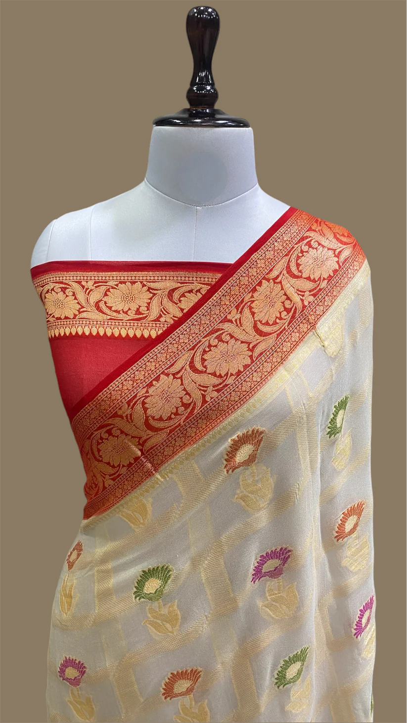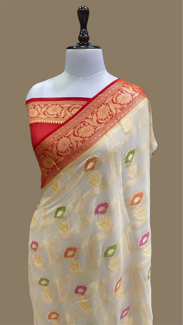 - Product – Pure khaddi georgette handloom Banarasi saree