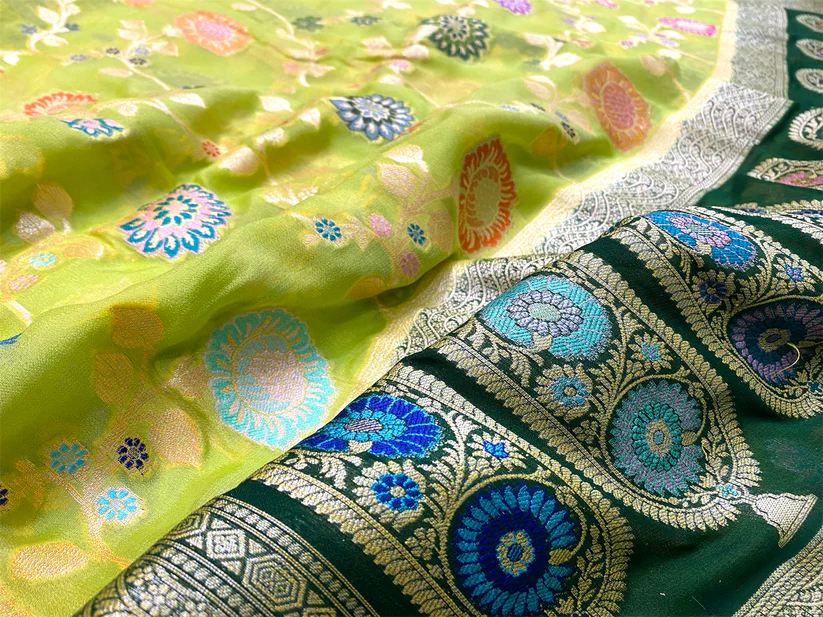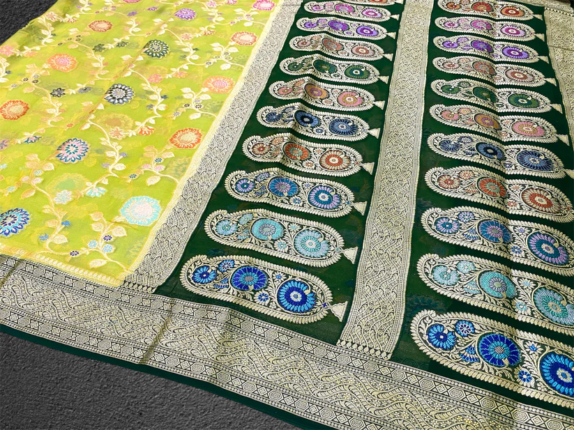 - Product – Pure khaddi georgette handloom Banarasi saree