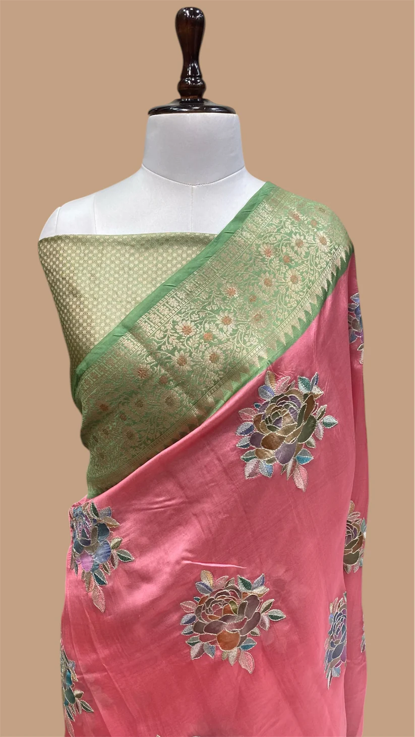 PURE MANGO SILK HANDLOOM BANARASI CHIKANKARI SAREE