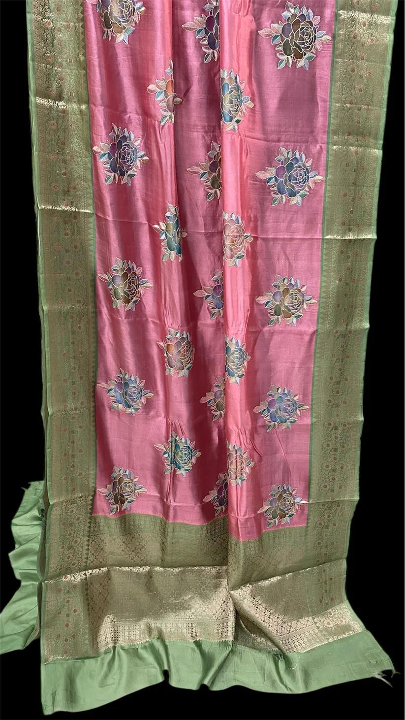 - Product – Pure mango silk chikankari position printed Banarasi saree