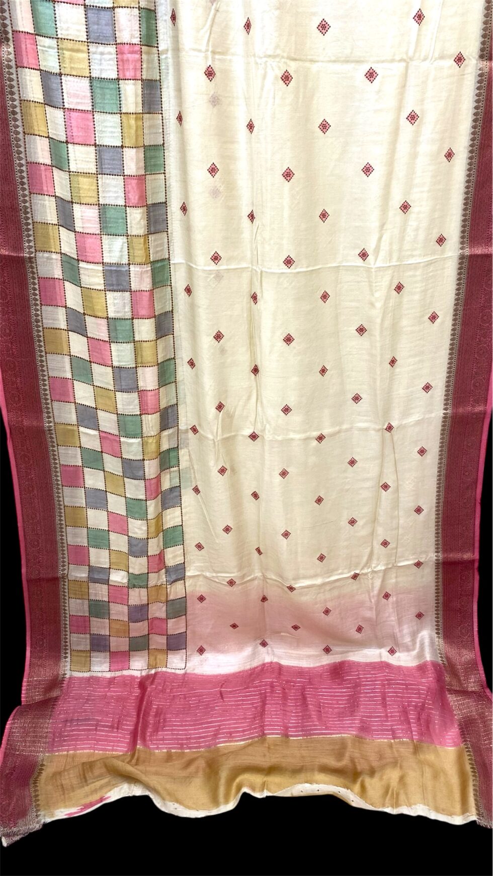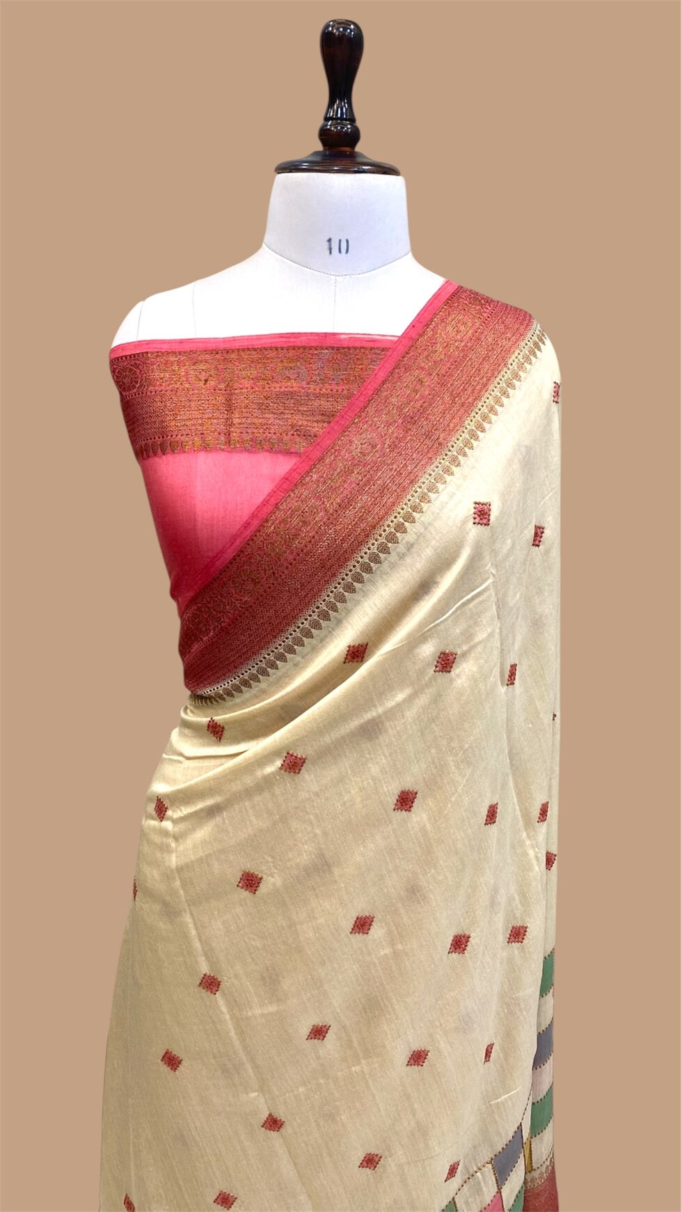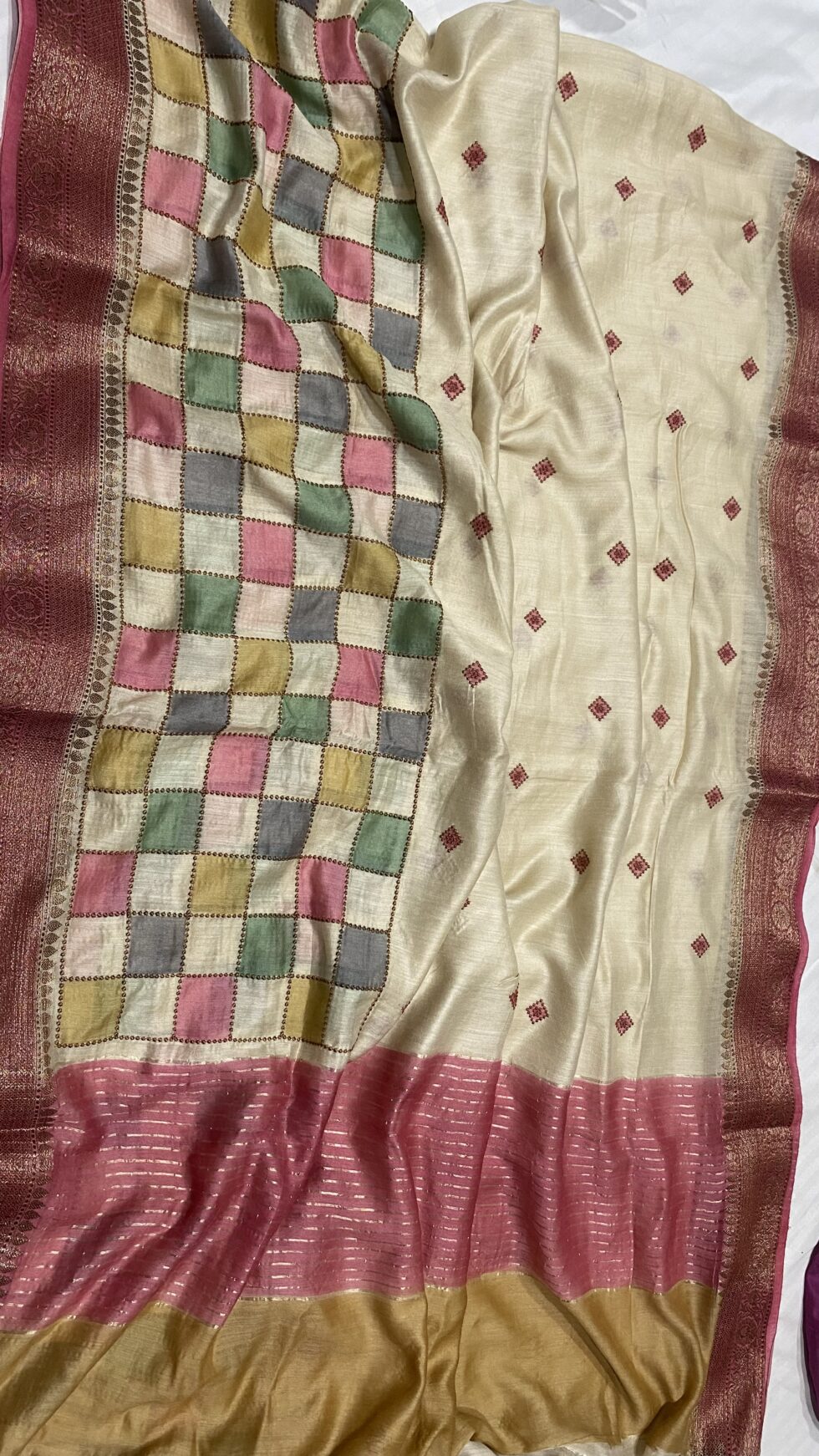 Product : pure moonga silk handloom banarasi chikankarari handpainted saree.