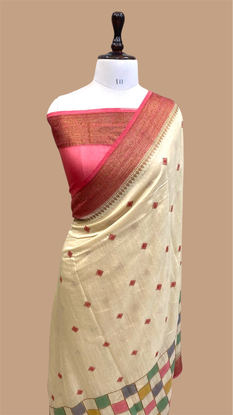Pure moonga silk handloom banarasi handpainted rangkaat saree with chikankari