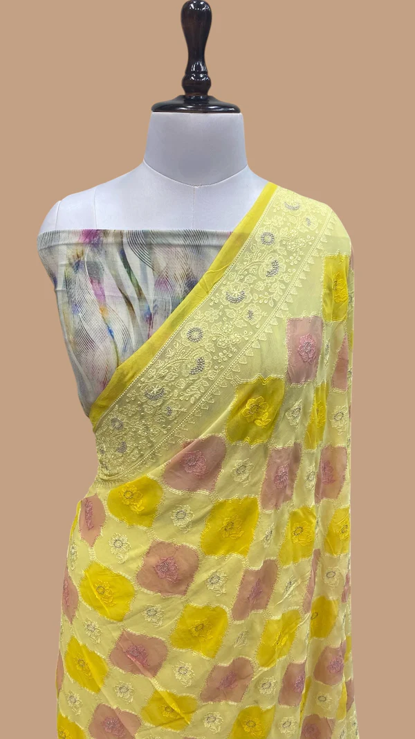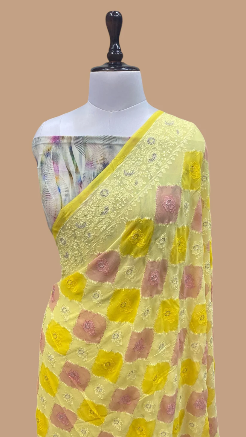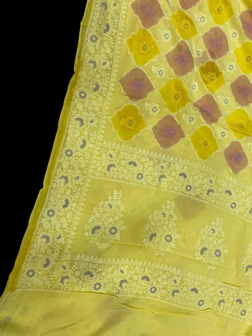 PURE VISCOSE GEORGETTE CHIKANKARI BANARASI SAREE
