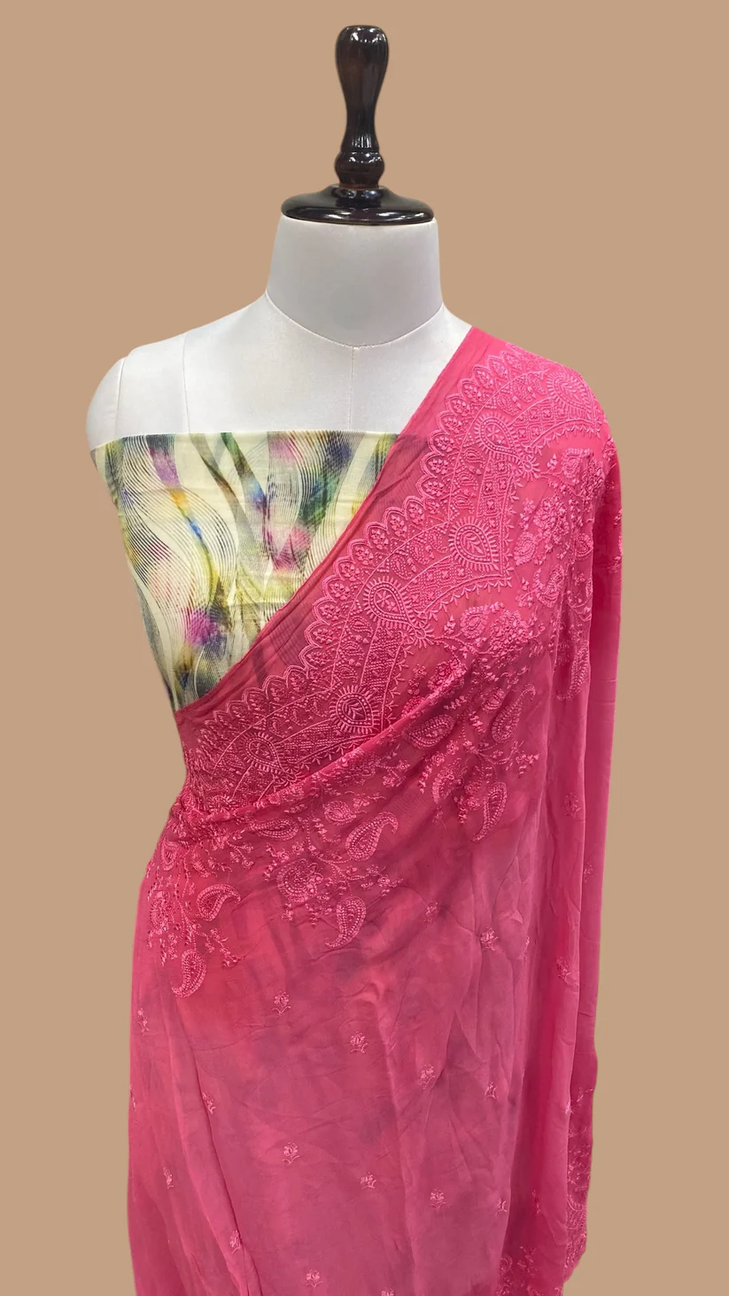 PURE VISCOSE GEORGETTE CHIKANKARI BANARASI SAREE