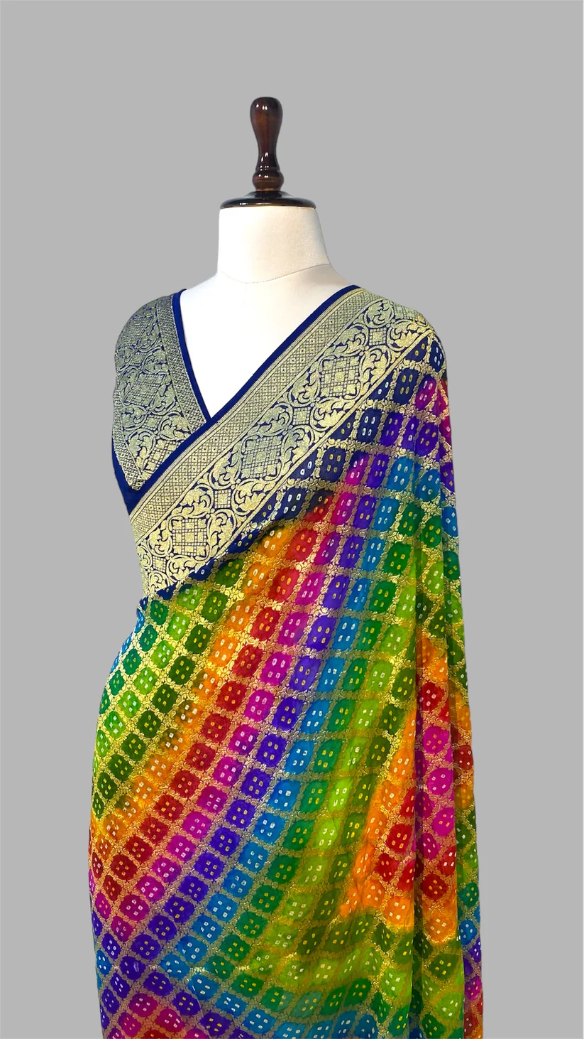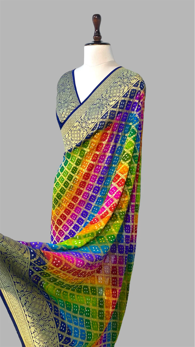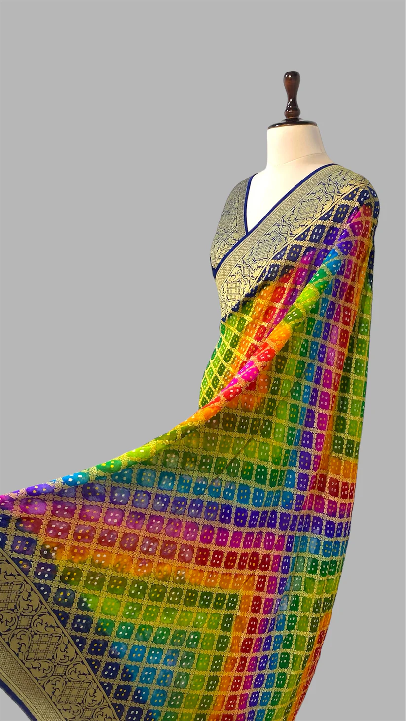 ‘RAINBOW’ PURE KHADDI GEORGETTE HANDLOOM BANDHANI BANARASI SAREE
