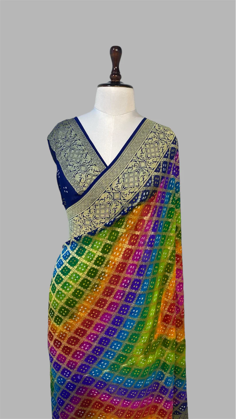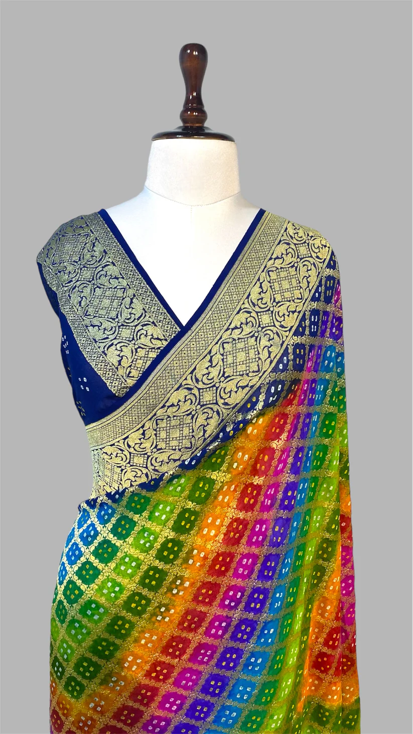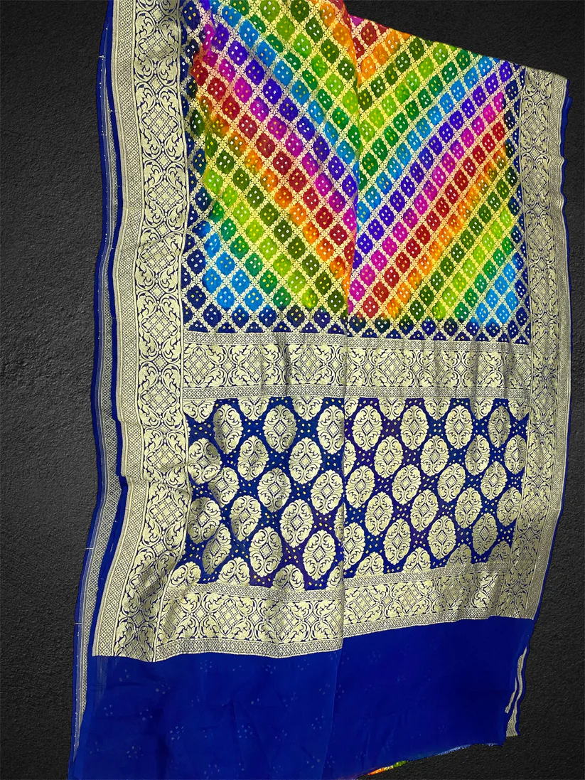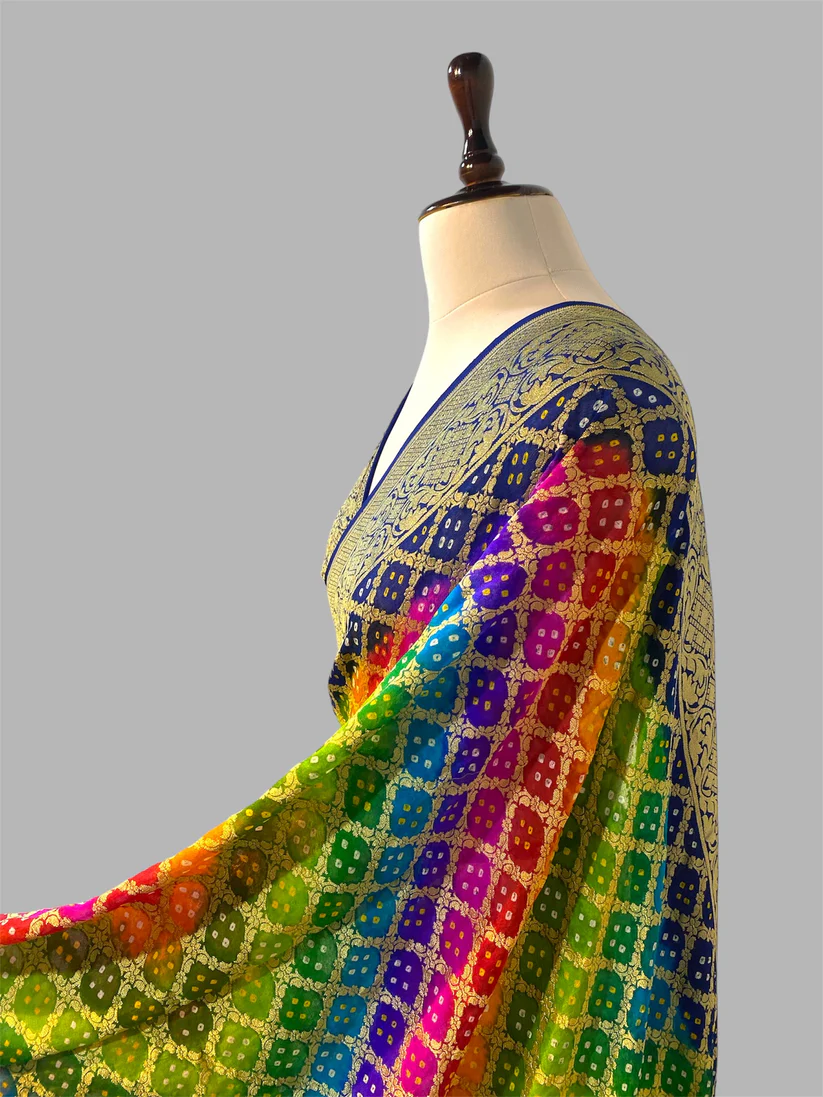 ‘RAINBOW’ PURE KHADDI GEORGETTE HANDLOOM BANDHANI BANARASI SAREE