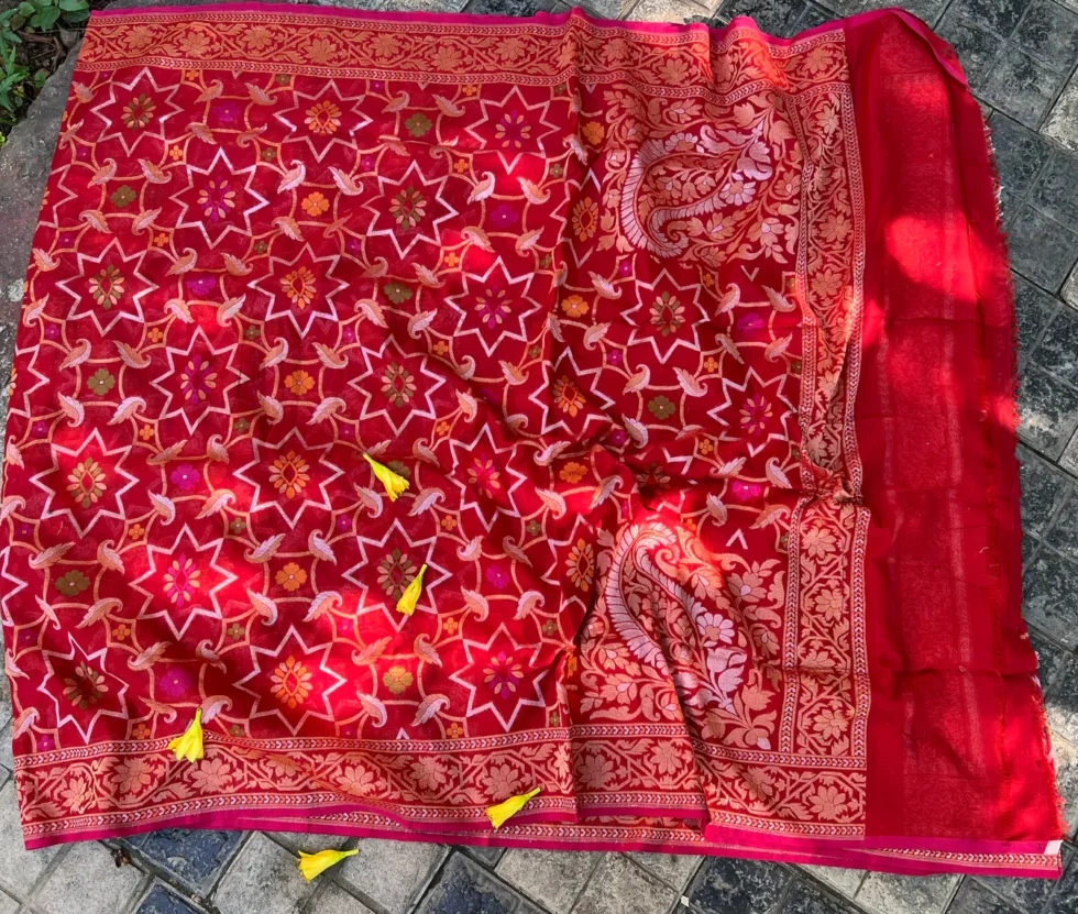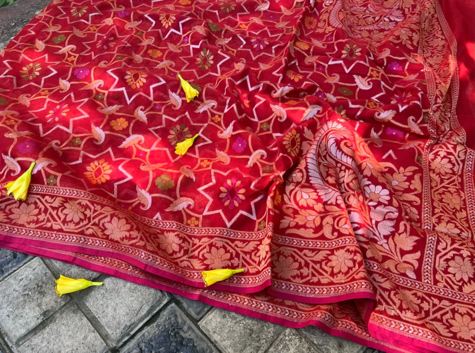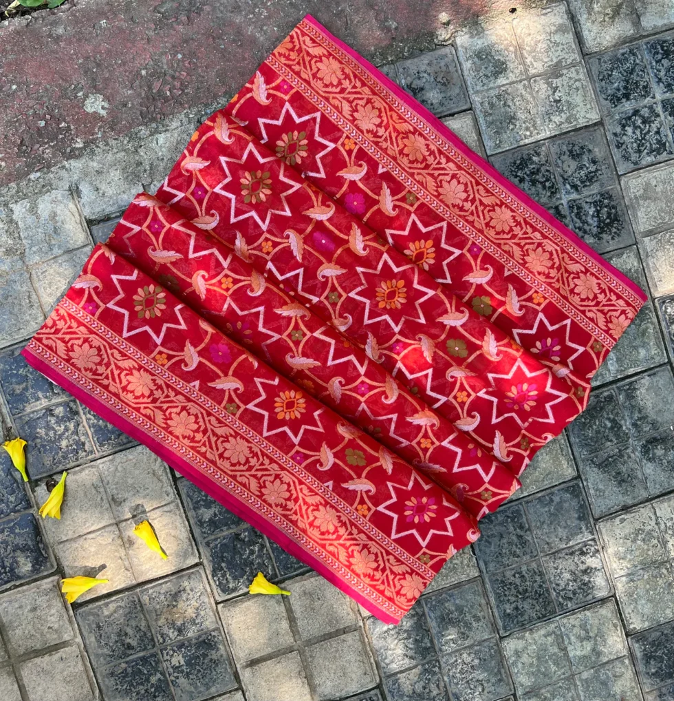 ‘RAKTAMBARI’ PURE COTTON JAMDANI BANARASI SAREE