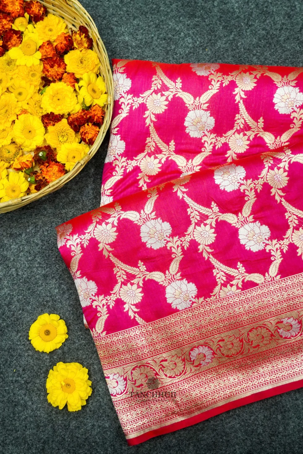 ‘RANI PINK’ PURE KATAAN SILK BANARASI SONA ROOPA JAAL SAREE