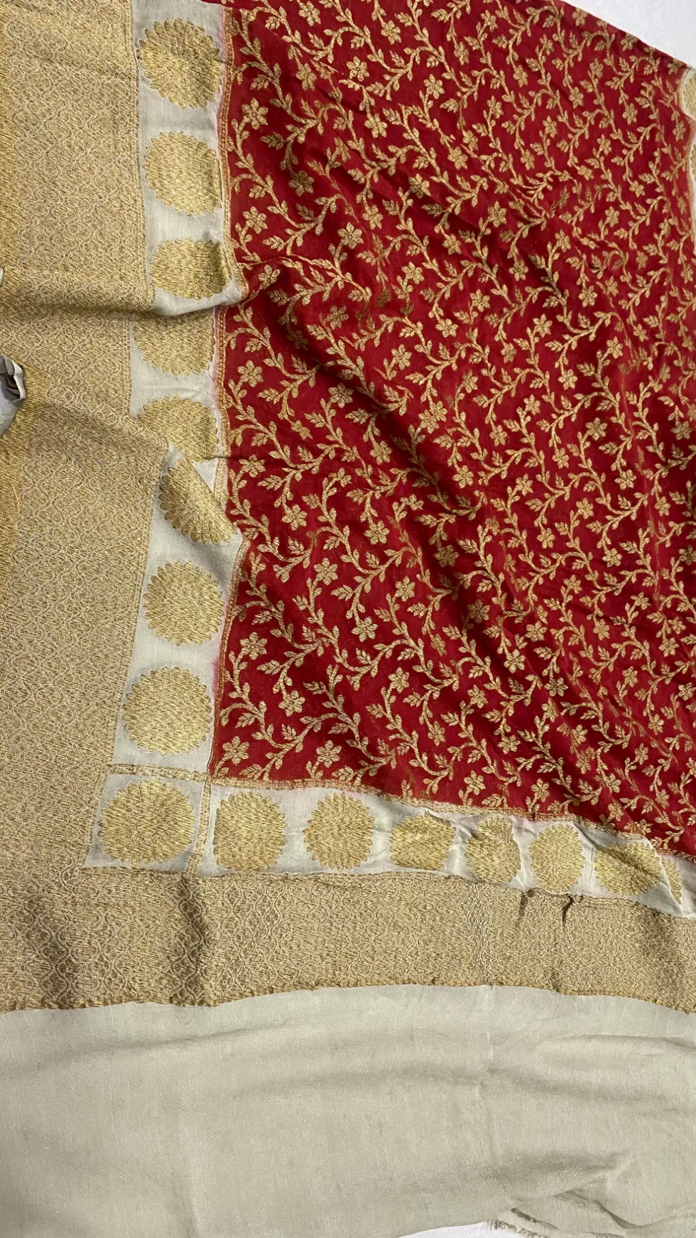 ‘RED AND BEIGE’ PURE KHADDI GEORGETTE HANDLOOM BANARASI DUPATTA
