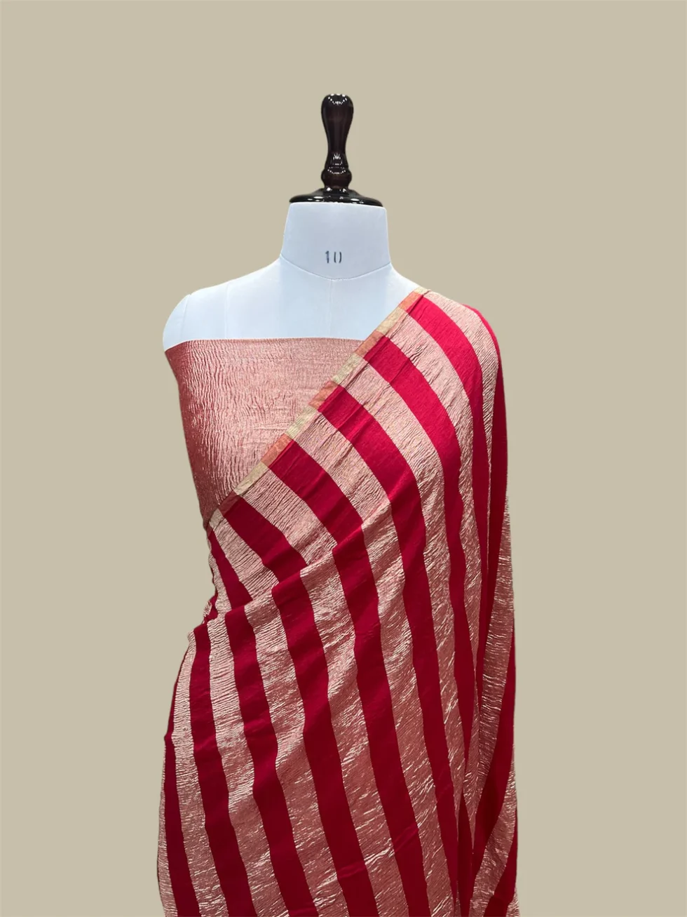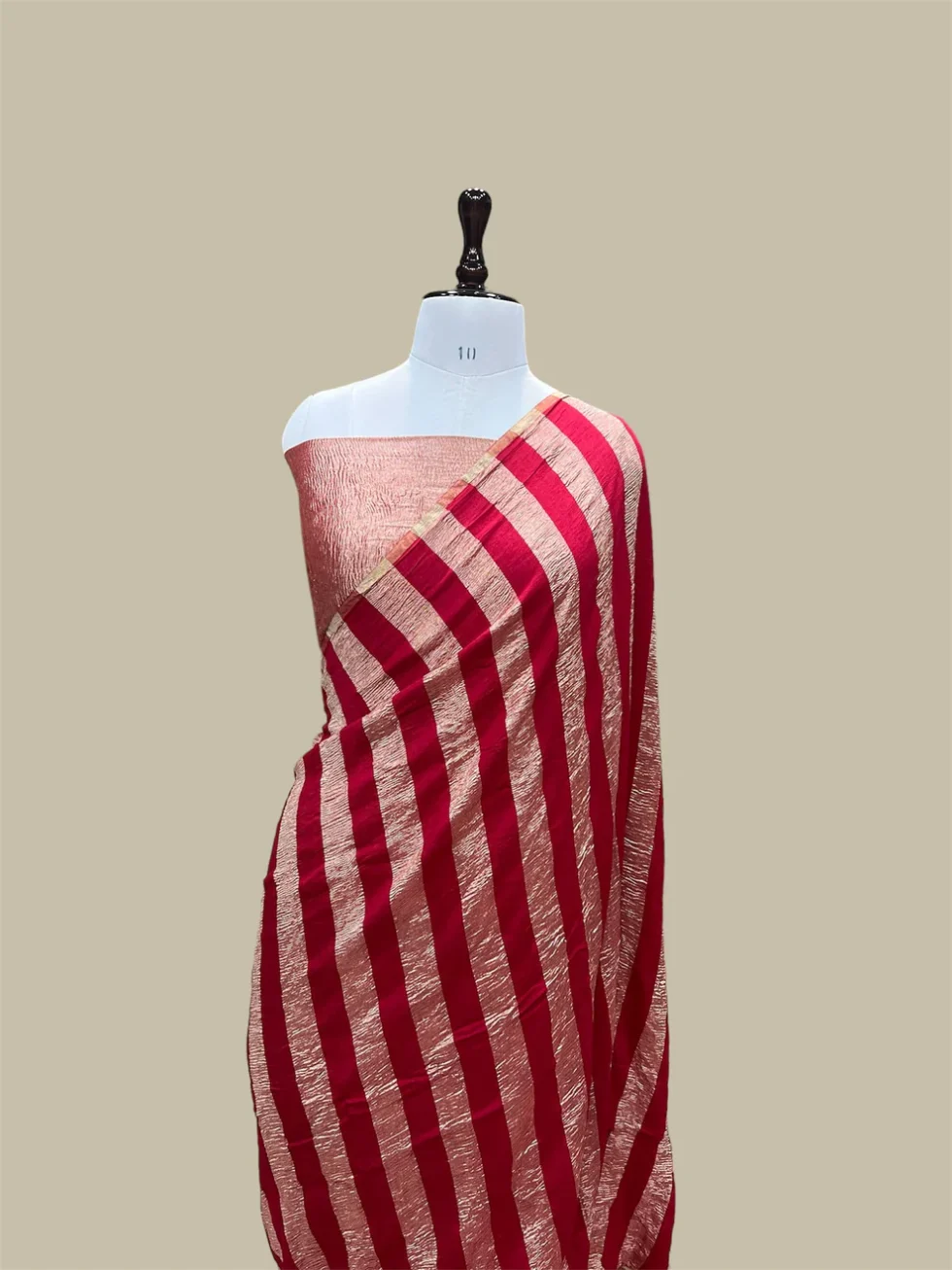 ‘RED’ PURE MOONGA SILK BANARASI STRIP SAREE