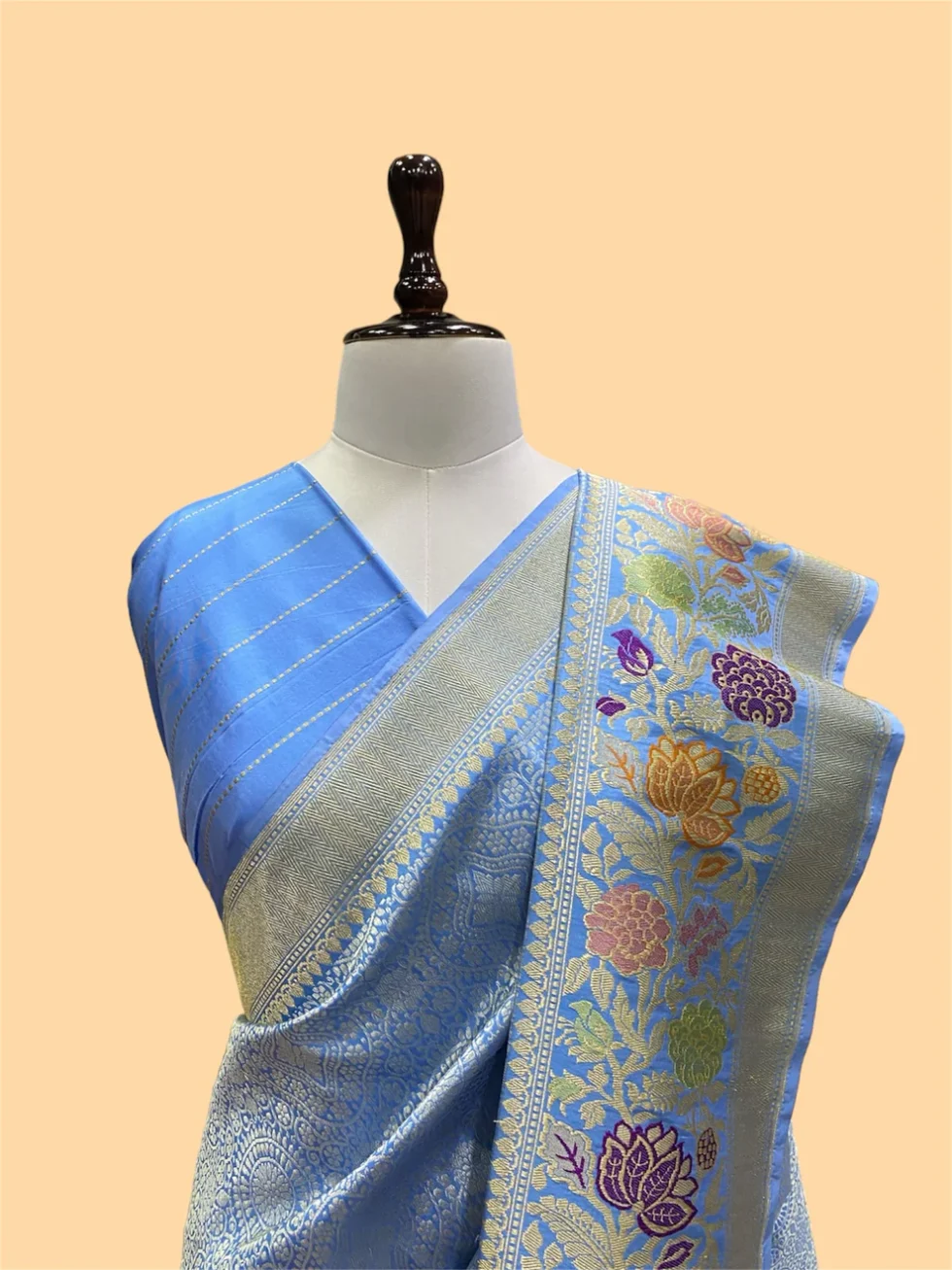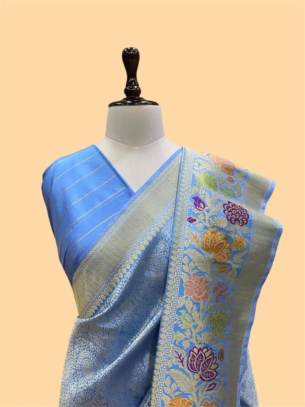‘SKY BLUE’ PURE KATAAN SILK HANDWOVEN BANARASI SAREE