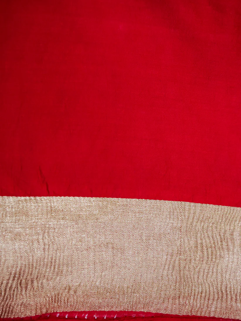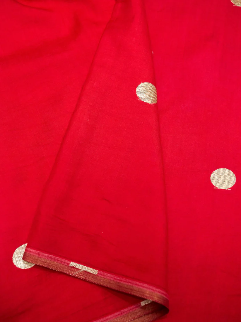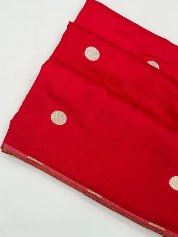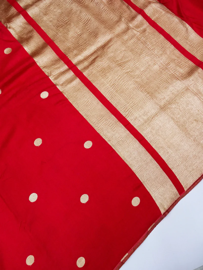 ‘SUITCASE RED’ PURE MASHRU SATIN SILK ASHARFI BUTTA SAREE