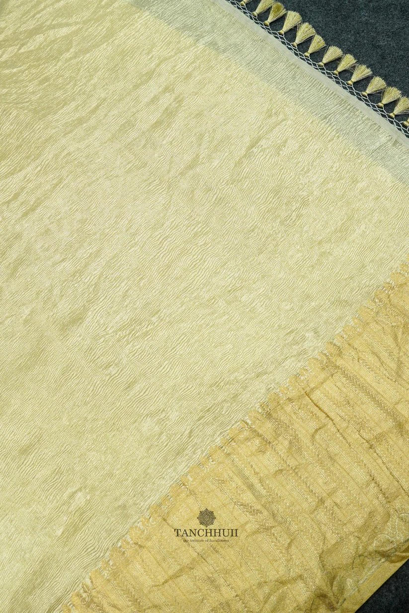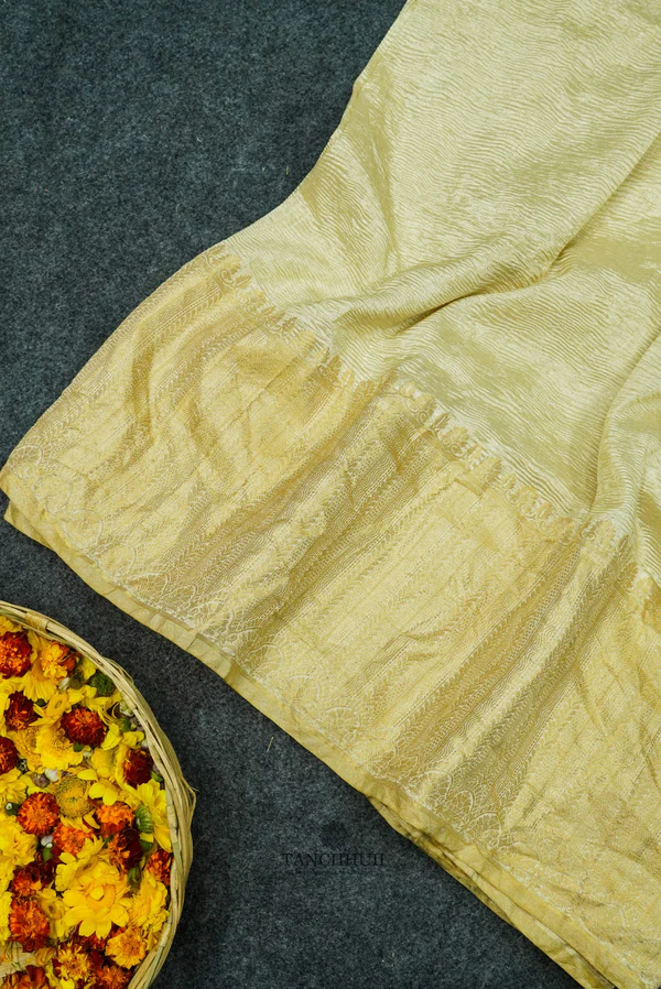 ‘VIDDYA BEIGE’ KORA CRUSH TISSUE SILK BANARASI SAREE