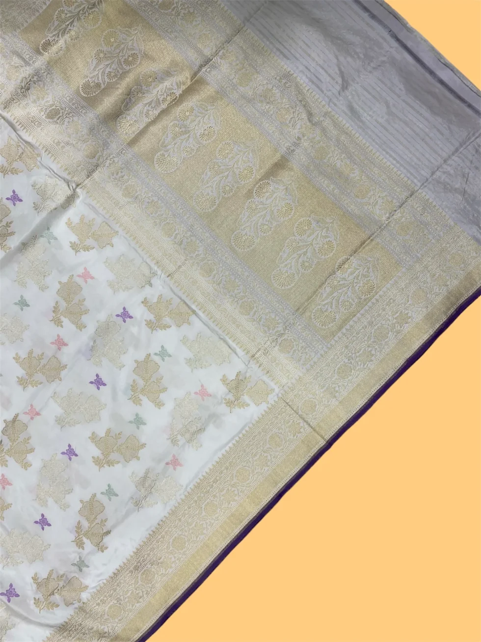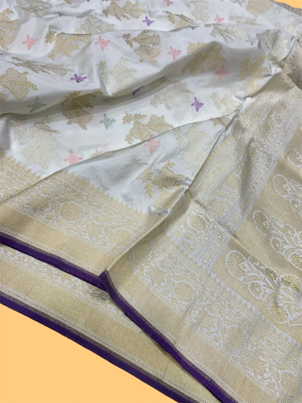 ‘WINGS WHITE’PURE KATAAN SILK HANDWOVEN JANGLA BANARASI SAREE